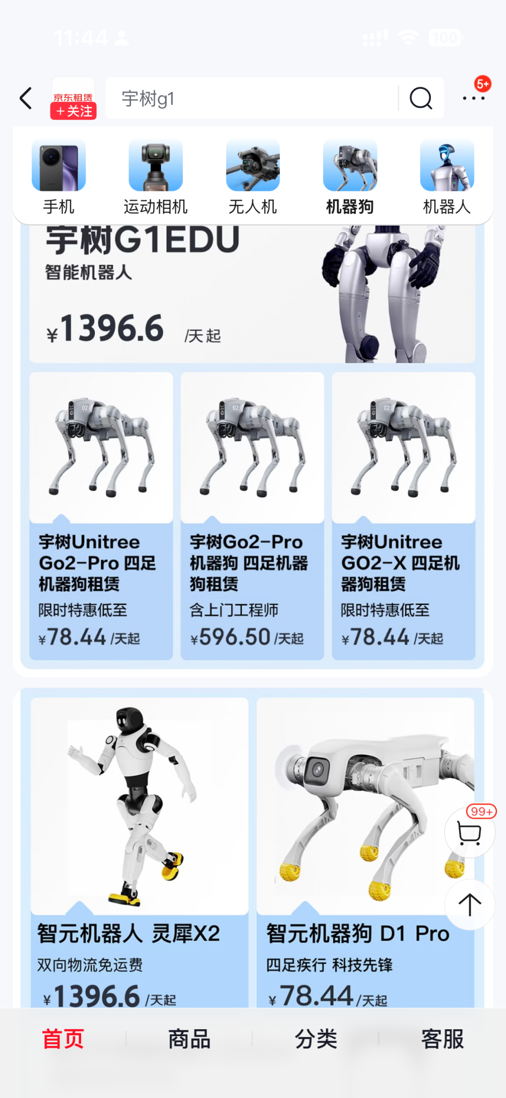 同时,随着供给端快速放量,行业竞争也随之加剧,机器人租赁价格在一年内已大幅跳水。一年前,租一台人形机器人做一场商业表演,日租金可达到1万-2万元;而澎湃新闻在京东租赁自营旗舰店看到最新的标价是:宇树U1人形机器人、智元机器人灵犀X2,含上门工程师服务,日租均为1396.6元;两家的机器狗也更便宜,不足79元一天。